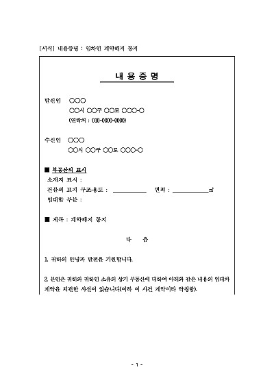 내용증명 : 임차인 계약해지 통지 요약정보 및 구매