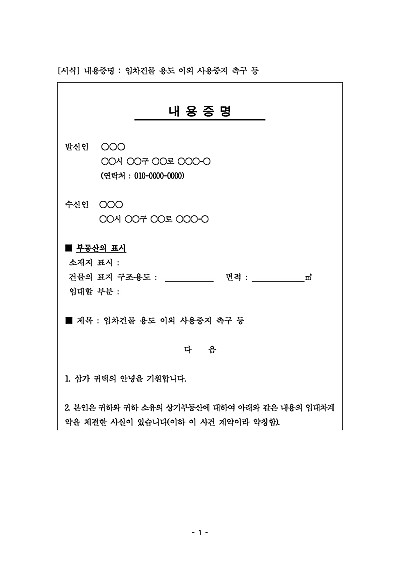 내용증명 : 임차건물 용도 이외 사용중지 촉구 등 요약정보 및 구매