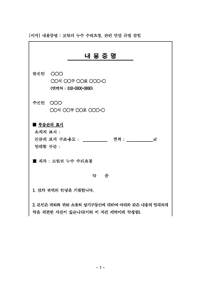 내용증명 : 보일러 누수 수리요청, 관련 민법 규정 삽입 요약정보 및 구매