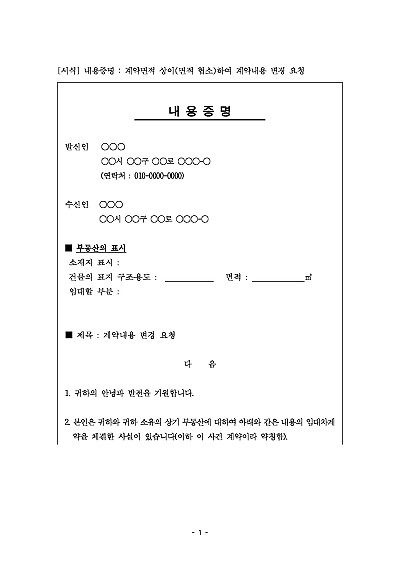 내용증명 : 계약면적 상이(면적 협소)하여 계약내용 변경 요청 요약정보 및 구매