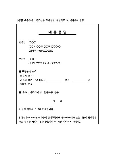 내용증명 : 임차건물 무단변경, 원상북구 및 계약해지 청구 요약정보 및 구매