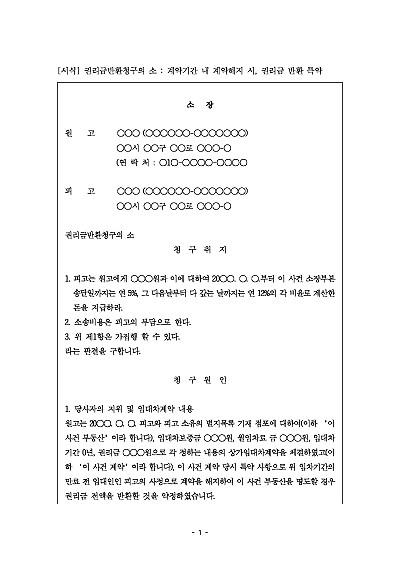 권리금반환청구의 소 : 계약기간 내 계약해지 시, 권리금 반환 특약 요약정보 및 구매