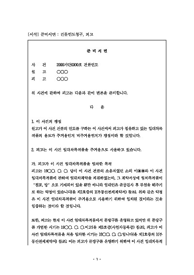 준비서면 : 건물인도청구, 피고 요약정보 및 구매