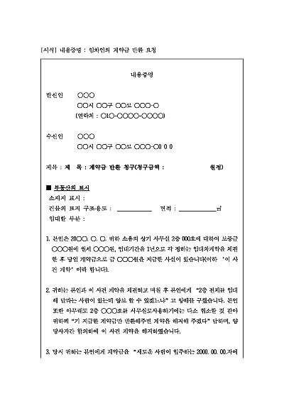 내용증명 : 임차인의 계약금 반환 요청 요약정보 및 구매