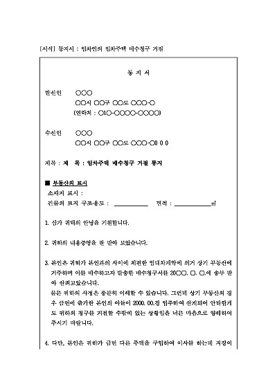 통지서 : 임차인의 임차주택 매수청구 거절 요약정보 및 구매