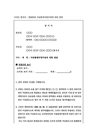 통지서 : 임차인의 지상물매수청구권에 대한 답변 요약정보 및 구매