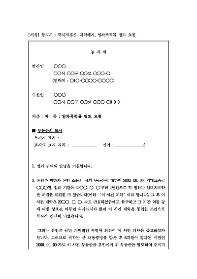 통지서 : 묵시적갱신, 계약해지, 임차목적물 명도 요청 요약정보 및 구매
