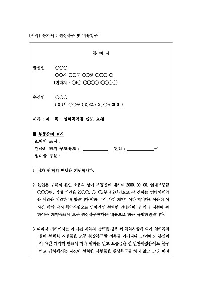 통지서 : 원상복구 및 비용청구 요약정보 및 구매