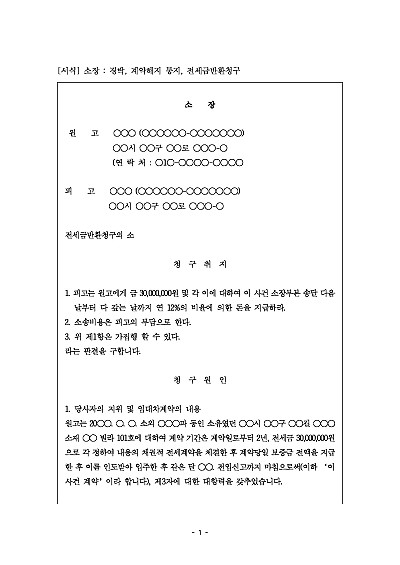 소장 : 경락, 계약해지 통지, 전세금반환청구 요약정보 및 구매