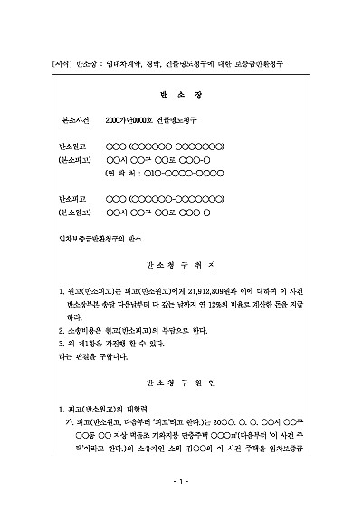 반소장 : 임대차계약, 경락, 건물명도청구에 대한 보증금반환청구 요약정보 및 구매