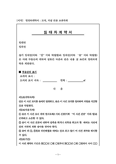 임대차계약서 : 토지, 지상 건물 소유목적 요약정보 및 구매