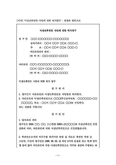 미성년후견인 사임에 대한 허가청구 : 질병을 원인으로 요약정보 및 구매