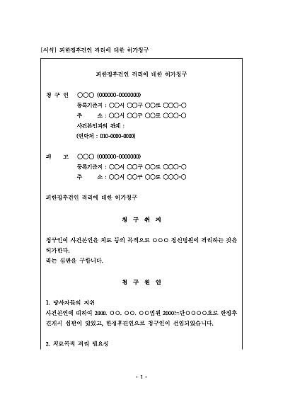 피한정후견인 격리에 대한 허가청구 요약정보 및 구매