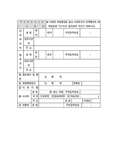 주요내용 : 피후견인의 사망, 후견 사유 소멸(성년), 후견인의 사임·사망 등 후견 종료 사유가 발생했을 때, 후견인이 법원에 후견 사무 종료를 알리고 등기를 신청할 때 사용되어지는 양식임. 단 무단전재 방지 목적으로 PDF 파일로 올리니, 구매하신 후 혹 원본 파일이 필요하신 분들은 톡이나 문자, 메일, 전화 등을 주시면 작성 방법 등에 대한 간단한 무료 상담과 함께 원본 파일을 보내드리도록 하겠습니다.