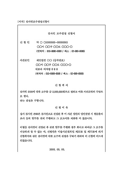 주요내용 법원이 선임한 검사인(조사위원)이 업무를 수행한 후, 해당 보수액을 확정해 달라고 법원에 요청하기 위하여 사용되어지는 신청서 양식임단 무단전재 방지목적으로 PDF 파일로 올리니구매하신 후 혹 원본 파일이 필요하신 분들은 톡이나 문자메일전화 등을 주시면 작성방법 등에 대한 간단한 무료상담과 함께 원본 파일을 보내드리도록 하겠습니다.