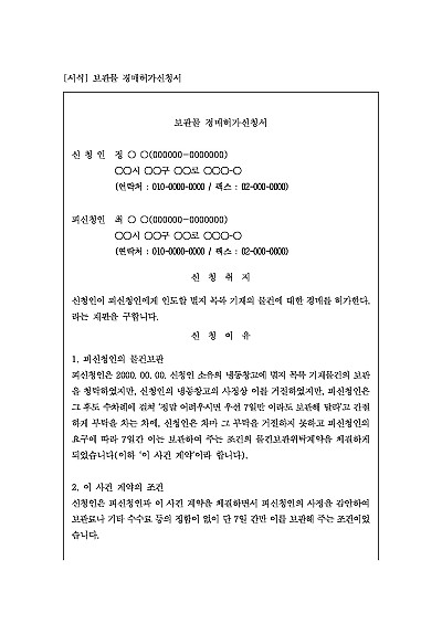 주요내용 : 변제목적물이 공탁에 부적합하거나 멸실 훼손우려, 과다한 비용 발생하는 등의 상황에서 법원의 허가를 받아 그 물건을 경매하거나 시가로 팔아 대금으로 채무를 변제하기 위한 목적으로 사용되어지는 신청서 양식임. 단 무단전재 방지목적으로 PDF 파일로 올리니, 구매하신 후 혹 원본 파일이 필요하신 분들은 톡이나 문자, 메일, 전화 등을 주시면 작성방법 등에 대한 간단한 무료상담과 함께 원본 파일을 보내드리도록 하겠습니다