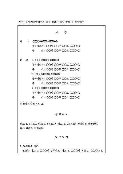 주요내용 친양자(양부모의 친생자와 동일한 법적 지위를 가지는 입양자)와의 입양 관계를 해소하기 위해 법원에 파양을 신청하기 위한 목적으로 사용되어지는 청구서 양식임단 무단전재 방지목적으로 PDF 파일로 올리니구매하신 후 혹 원본 파일이 필요하신 분들은 톡이나 문자메일전화 등을 주시면 작성방법 등에 대한 간단한 무료상담과 함께 원본 파일을 보내드리도록 하겠습니다.