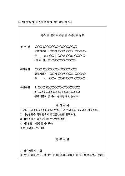 양육 및 친권자 지정 및 유아인도 청구서 요약정보 및 구매