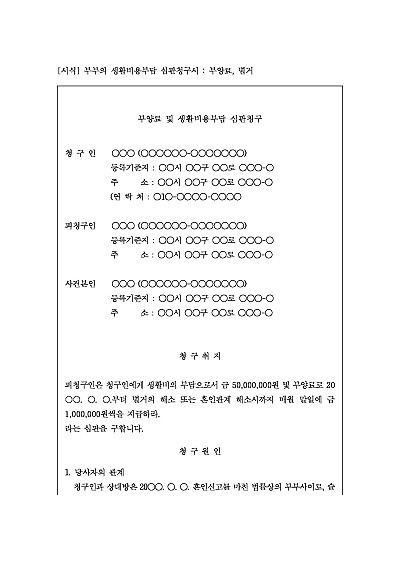 부부의 생활비용부담 심판청구서 : 부양료, 별거 요약정보 및 구매