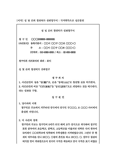 성 및 본의 창설허가 심판청구서 : 국적취득으로 성본창설 요약정보 및 구매