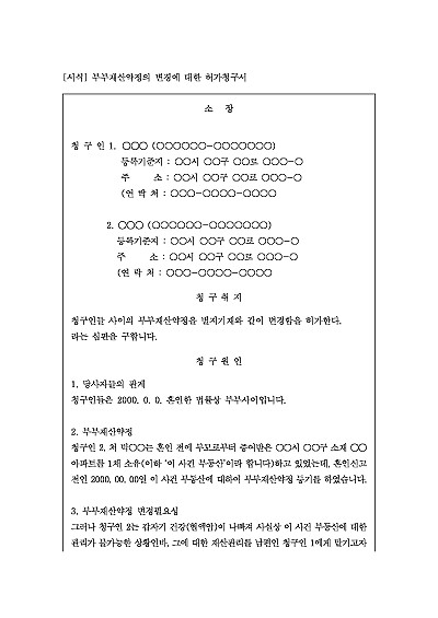 부부재산약정의 변경에 대한 허가청구서 요약정보 및 구매