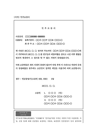 주요내용 : '이웃(隣)'과 '친구(友)'처럼 가까운 사람이 특정 사실(출생, 사망, 신원 등)에 대해 진실임을 보증하는 서류 양식임. 단 무단전재 방지목적으로 PDF 파일로 올리니, 구매하신 후 혹 원본 파일이 필요하신 분들은 톡이나 문자, 메일, 전화 등을 주시면 작성방법 등에 대한 간단한 무료상담과 함께 원본 파일을 보내드리도록 하겠습니다.