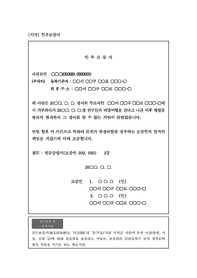 주요내용  '이웃(隣)'과 '친구(友)'처럼 가까운 사람이 특정 사실(출생, 사망, 신원 등)에 대해 진실임을 보증하는 서류 양식임단 무단전재 방지목적으로 PDF 파일로 올리니구매하신 후 혹 원본 파일이 필요하신 분들은 톡이나 문자메일전화 등을 주시면 작성방법 등에 대한 간단한 무료상담과 함께 원본 파일을 보내드리도록 하겠습니다.