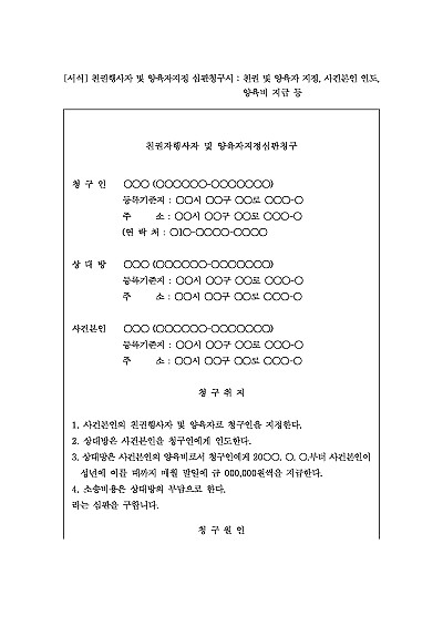 친권행사자 및 양육자지정 심판청구서 : 친권 및 양육자 지정, 사건본인 인도, 양육비 지급 등 요약정보 및 구매