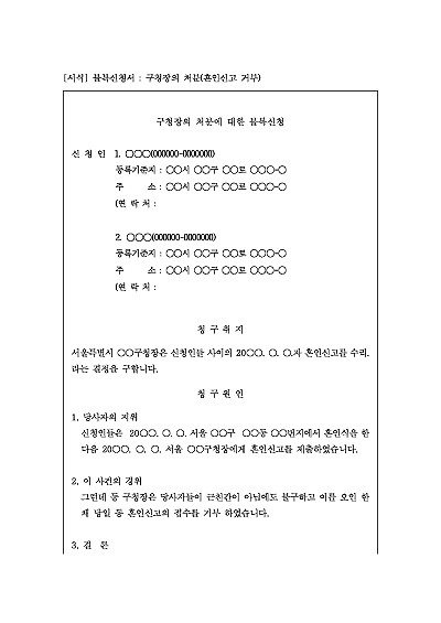 주요내용 : 구청장(또는 그 소속 행정기관)의 위법하거나 부당한 처분이나 부작위로 인해 권리 또는 이익을 침해받은 국민이 해당 처분을 취소, 변경하거나 필요한 처분을 하도록 요구하기 위한 목적으로 사용되어지는 신청서 양식임. 단 무단전재 방지목적으로 PDF 파일로 올리니, 구매하신 후 혹 원본 파일이 필요하신 분들은 톡이나 문자, 메일, 전화 등을 주시면 작성방법 등에 대한 간단한 무료상담과 함께 원본 파일을 보내드리도록 하겠습니다.