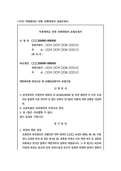 약혼해제로 인한 손해배상의 조정신청서 요약정보 및 구매