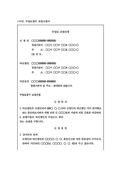 주요내용 : 이혼 소송 중이거나 별거 중인 부부가 민법상 서로 부양하고 협조해야 할 의무(동거, 부양, 협조)에 따라, 경제적으로 어려운 배우자가 상대방에게 생활비 등을 청구하기 위한 목적으로 사용되어지는 신청서 양식임. 단 무단전재 방지목적으로 PDF 파일로 올리니, 구매하신 후 혹 원본 파일이 필요하신 분들은 톡이나 문자, 메일, 전화 등을 주시면 작성방법 등에 대한 간단한 무료상담과 함께 원본 파일을 보내드리도록 하겠습니다.