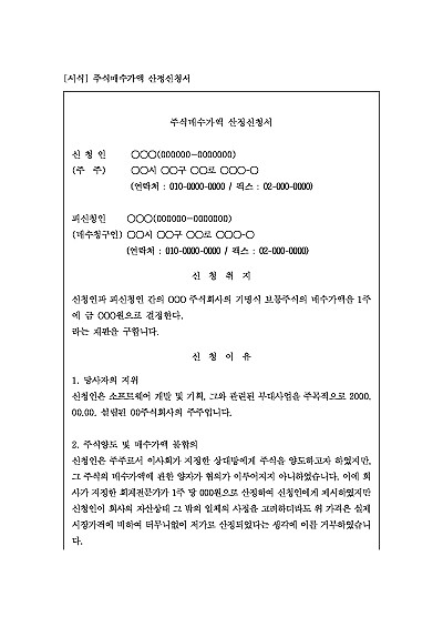 주식매수가액 산정신청서 요약정보 및 구매