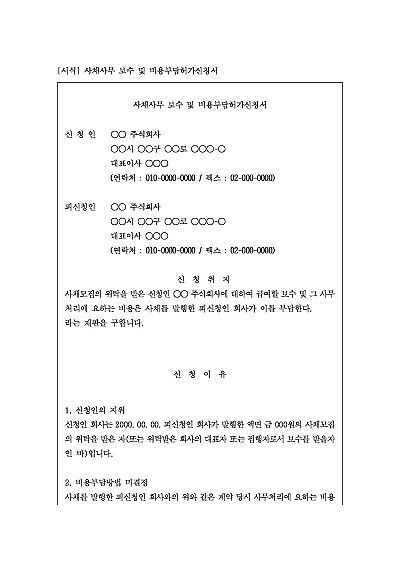 주요내용 : 사채관리회사, 대표자 또는 집행자가 법원의 허가를 받아 사채 발행 회사로부터 자신의 보수나 사무 처리에 필요한 비용을 지급받기 위한 목적으로 사용되어지는 신청서 양식임. 단 무단전재 방지목적으로 PDF 파일로 올리니, 구매하신 후 혹 원본 파일이 필요하신 분들은 톡이나 문자, 메일, 전화 등을 주시면 작성방법 등에 대한 간단한 무료상담과 함께 원본 파일을 보내드리도록 하겠습니다.