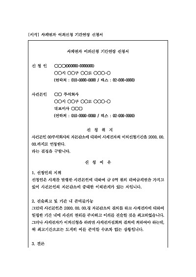 사채권자 이의신청 기간연장 신청서 요약정보 및 구매