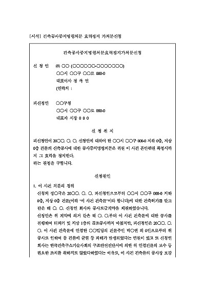 건축공사중지명령처분 효력정지 가처분신청 요약정보 및 구매