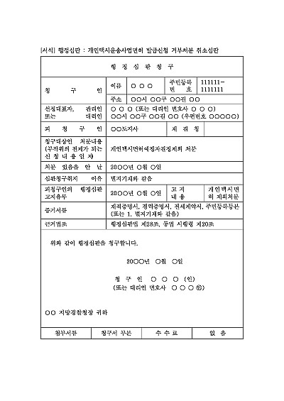 행정심판 : 개인택시운송사업면허 발급신청 거부처분 취소심판 요약정보 및 구매