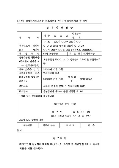 영업허가취소처분 취소심판청구서 : 영업정지기간 중 영업 요약정보 및 구매
