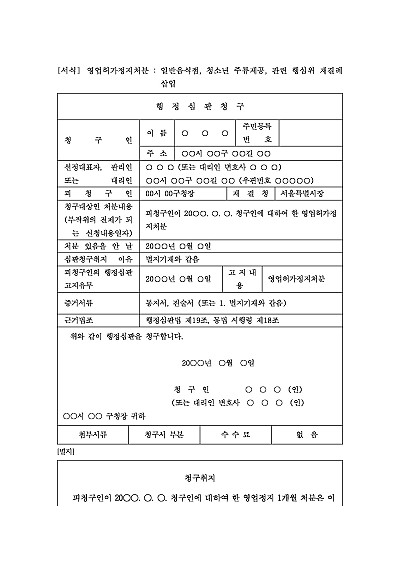 [로펌제작] 영업허가정지처분 : 일반음식점, 청소년 주류제공, 관련 행심위 재결례 삽입 요약정보 및 구매