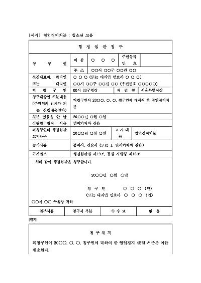 주요내용 : 위법 부당한 행정처분으로 인해 권리나 이익을 침해당한 국민이 처분이 있음을 안날부터 90일 또는 처분이 있었던 날부터 180일 이내에 그 처분의 취소 또는 변경이나 무효확인 구하기 위한 행정절차를 진행하기 위해 사용되어지는 신청서 양식임단 무단전재 방지목적으로 PDF 파일로 올리니구매하신 후 혹 원본 파일이 필요하신 분들은 톡이나 문자메일전화 등을 주시면 작성방법 등에 대한 간단한 무료상담과 함께 원본 파일을 보내드리도록 하겠습니다.