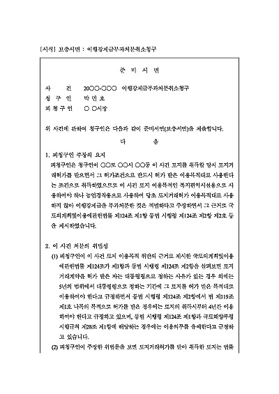 주요내용 : 피청구인(처분청)의 답변서 내용을 반박하거나, 행정심판청구서에서 미처 주장 하지 못한 내용을 보완하기 위한 목적으로 제출하는 서면 양식임. 단 무단전재 방지목적으로 PDF 파일로 올리니, 구매하신 후 혹 원본 파일이 필요하신 분들은 톡이나 문자, 메일, 전화 등을 주시면 작성방법 등에 대한 간단한 무료상담과 함께 원본 파일을 보내드리도록 하겠습니다.
