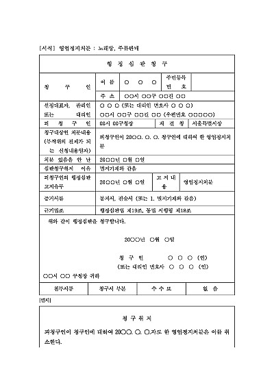 주요내용 : 위법 부당한 행정처분으로 인해 권리나 이익을 침해당한 국민이 처분이 있음을 안날부터 90일 또는 처분이 있었던 날부터 180일 이내에 그 처분의 취소 또는 변경이나 무효확인 구하기 위한 행정절차를 진행하기 위해 사용되어지는 신청서 양식임단 무단전재 방지목적으로 PDF 파일로 올리니구매하신 후 혹 원본 파일이 필요하신 분들은 톡이나 문자메일전화 등을 주시면 작성방법 등에 대한 간단한 무료상담과 함께 원본 파일을 보내드리도록 하겠습니다.