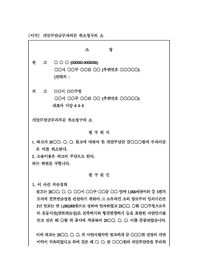 개발부담금부과처분 취소청구의 소 요약정보 및 구매