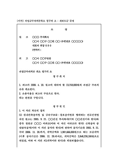 과징금부과처분취소 청구의 소 : 재하도급 문제 요약정보 및 구매