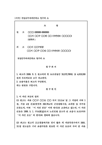 변상금부과처분취소 청구의 소 : 도로점유 사용에 대한 다툼 요약정보 및 구매