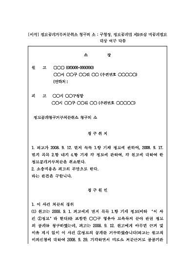 주요내용 정보공개청구에 대한 공공기관의 비공개 또는 부분공개 결정에 대하여, 당해 처분이 위법 또는 부당함을 이유로 그 취소를 구하지 위한 목적으로 사용되어지는 소장 양식임단 무단전재 방지목적으로 PDF 파일로 올리니구매하신 후 혹 원본 파일이 필요하신 분들은 톡이나 문자메일전화 등을 주시면 작성방법 등에 대한 간단한 무료상담과 함께 원본 파일을 보내드리도록 하겠습니다