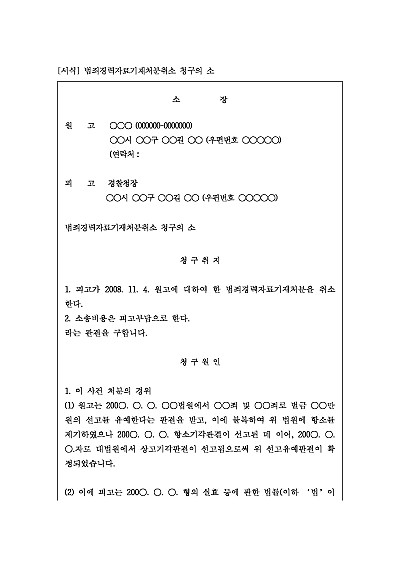 주요내용 : 자신의 범죄경력 자료에 기재된 내용이 부당하다고 판단될 때, 해당 기재의 취소를 구하기 위한 목적으로 사용되어지는 소장 양식임. 단 무단전재 방지목적으로 PDF 파일로 올리니, 구매하신 후 혹 원본 파일이 필요하신 분들은 톡이나 문자, 메일, 전화 등을 주시면 작성방법 등에 대한 간단한 무료상담과 함께 원본 파일을 보내드리도록 하겠습니다.