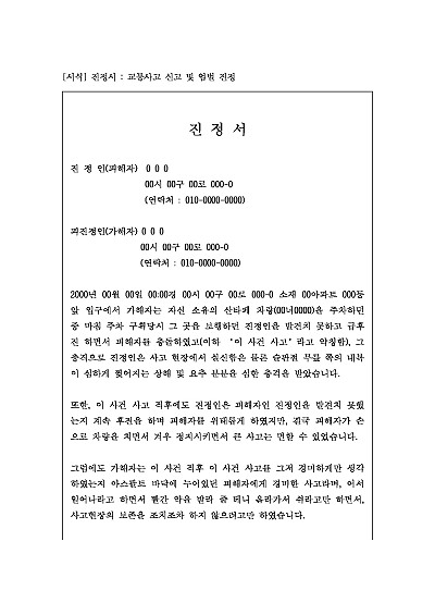 진정서 : 교통사고 신고 및 엄벌 진정 요약정보 및 구매