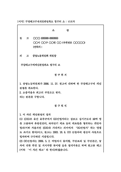 부당해고구제재심판정취소 청구의 소 : 근로자 요약정보 및 구매