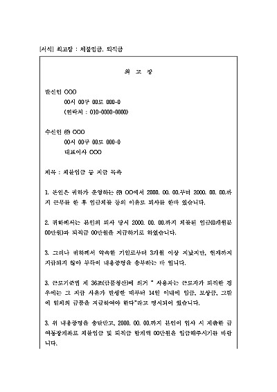 주요내용 : 상대방에게 특정 행위(주로 채무 변제, 계약 이행 등)를 하도록 독촉하고 재촉하는 내용의 문서 양식임. 단 무단전재 방지목적으로 PDF 파일로 올리니, 구매하신 후 혹 원본 파일이 필요하신 분들은 톡이나 문자, 메일, 전화 등을 주시면 작성방법 등에 대한 간단한 무료상담과 함께 원본 파일을 보내드리도록 하겠습니다.