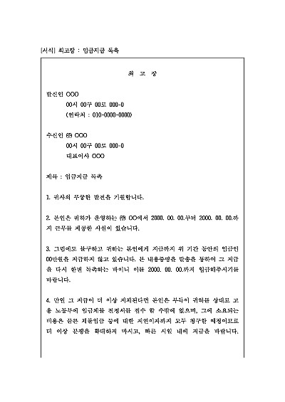 최고장 : 임금지급 독촉 요약정보 및 구매